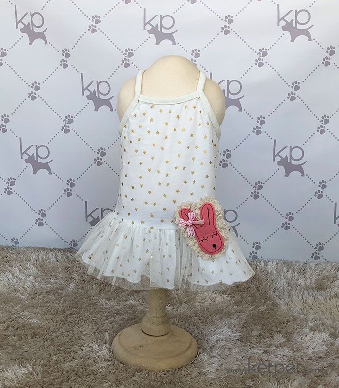 O Vestido Estrela da Keypetstore é feito em malha super confortavel com babado em cetim.