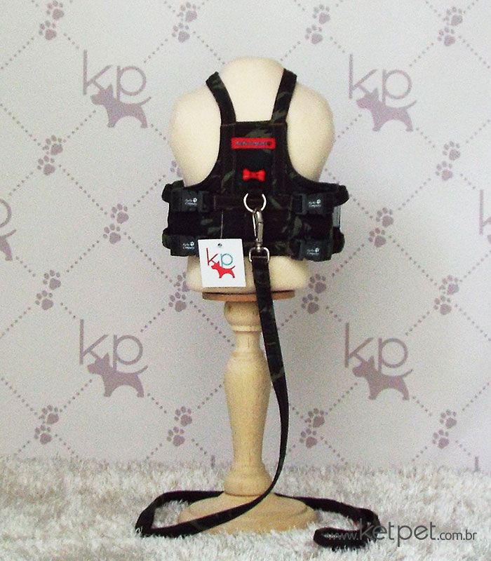 A Colete Peitoral com Guia Camuflado da Keypetstore Au Au Company acompanha a guia,(mosquetão resistente). Peitoral Indicado para usar com cinto de segurança.